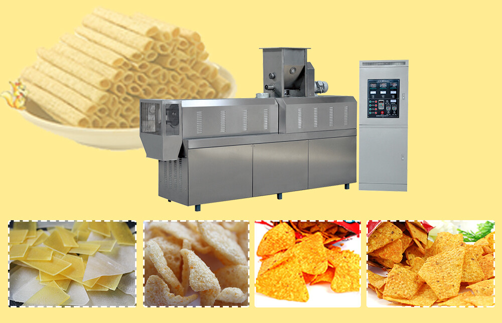 Extruded and fried foods also differ in their production processes. Extruded foods are primarily extruded using a twin-screw extruder under high-temperature, high-pressure conditions, while fried foods are puffed by deep-frying at high temperatures.